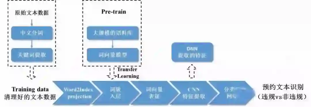 自然语言处理技术,通过复杂的词向量模型将文本转化为计算机能够识别和计算的词向量表征,并基于深度学习技术对其进行特征提取,最终运用成熟的分类器网络将文本数据与违约风险实现高度的风险挂钩。