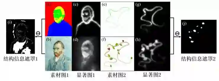 1. 显著结构信息提取。通过显著性检测对图像中各个像素点的显著度进行计算,将满足结构信息定义的像素点标注为显著性点,得到素材风格图中的显著性结构信息,可视化过程如图 3 所示。