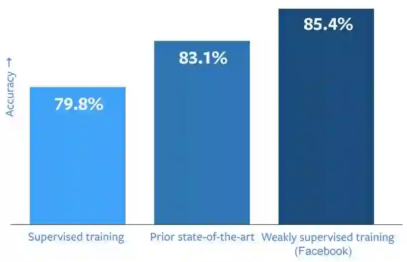由于目前的模型通常是对经过人类手动进行标记的数据进行训练,所以提高识别率并不是简单地投入更多训练图像就可做到的。这种劳动密集型的监督式学习通常会产生最佳的性能结果,但手动标记数据集这样的方式限制了功能的发展。Facebook 对一些模型进行训练的图像规模达 5000 万,但当训练图像扩大到数十亿的规模时,这种用人工进行所有监督的方式显然是不可行的。
