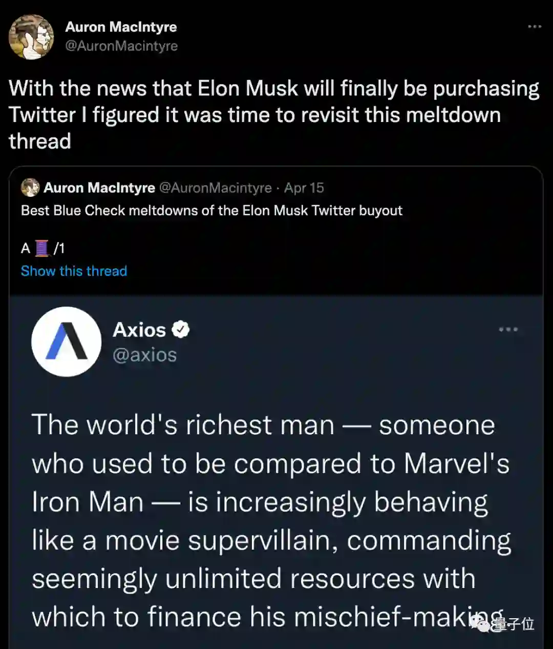 4月15日收购序幕拉开时,有人在推特上建立了一个事件线程,结果这一线程绵延几个月、从春走到冬。