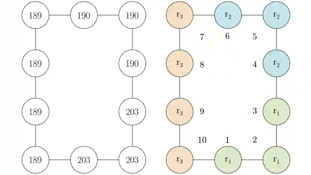 在图G的背景下,奖励可以解释为顶点(vertices)的可观察特征。由于人们经常基于可观察的特征进行聚类分析,因此对由奖励催生的状态簇建模是合理的[5]。此外,我们假设每个状态交付一个随机确定的奖励,而智能体的目标是将总奖励最大化[8]。