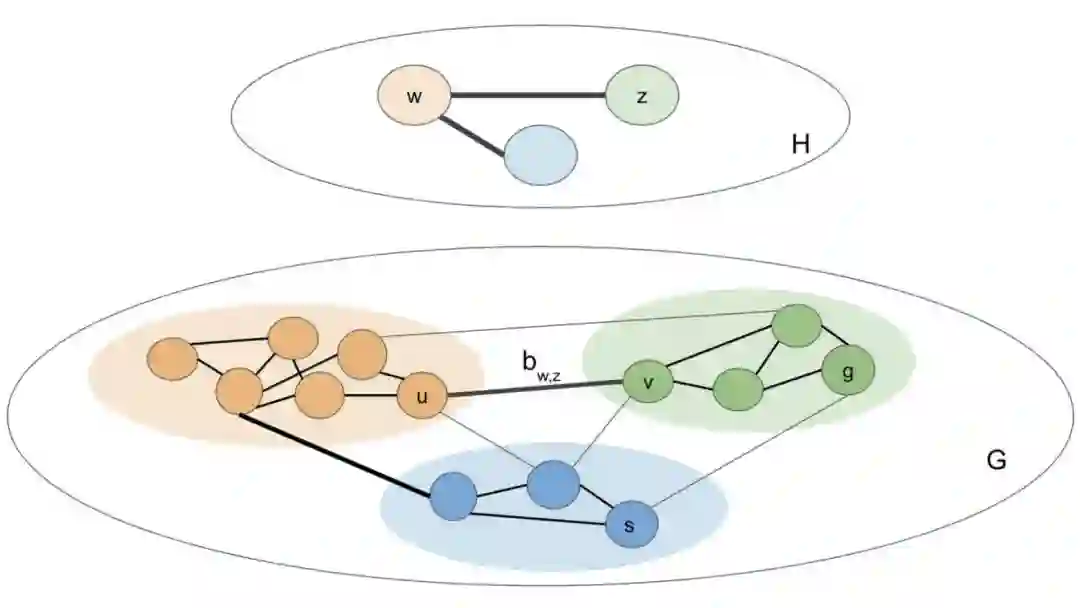 我们将可观察的环境表示为图 G =(V,E),潜在分层表示为图H。G和H均为未加权的无向图。图H包含了状态簇(图G中的每个低级节点都恰好属于图H中的一个簇)以及连接这些簇的桥(bridge)或高级边。只有当某些 v,v'∈V 之间存在边,形成v∈k 和 v'∈k' 时,簇 k 和 k' 之间才能存在桥,比如图H中的每一条高级边在图G中都有一条相对应的低级边。