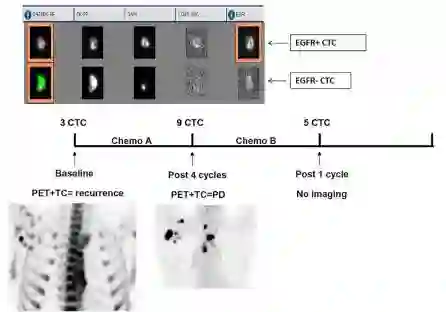 图6:CTCs的数量变化与影像学所见的联合诊断,为修正患者治疗方案提供参考意见(引用自PLoS One. 2014 Aug 8;9(8):e103918)
