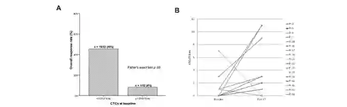 图5:化疗前后CTCs数量变化与预后关联(引用自PLoS One.2014 Aug 8;9(8))
