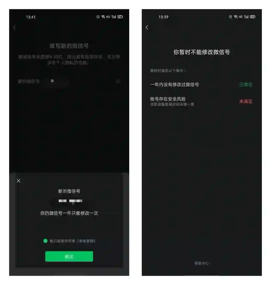 需要满足两个条件:最近一年没有修改过微信号以及当前帐号无安全风险。