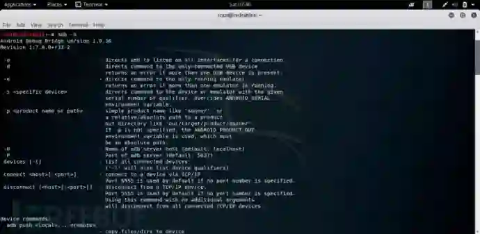 现在,我们就可以在Android设备上执行不同的adb命令了。通过-h选项查看可用参数: