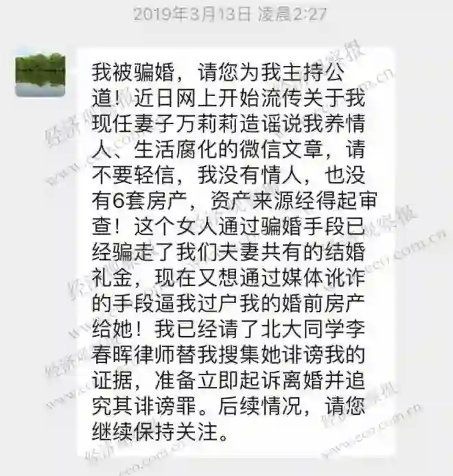 在4月8日的视频举报之前,万莉莉也曾在3月中旬在网络上对黄新公开举报。对于此前的举报,黄新曾表示,妻子造谣说其养情人、生活腐化,他已经聘请律师维权。