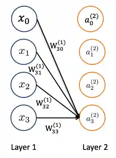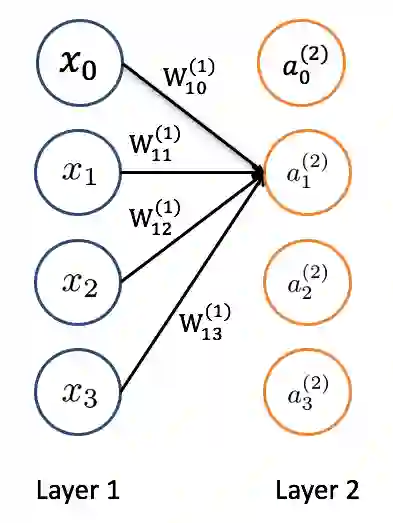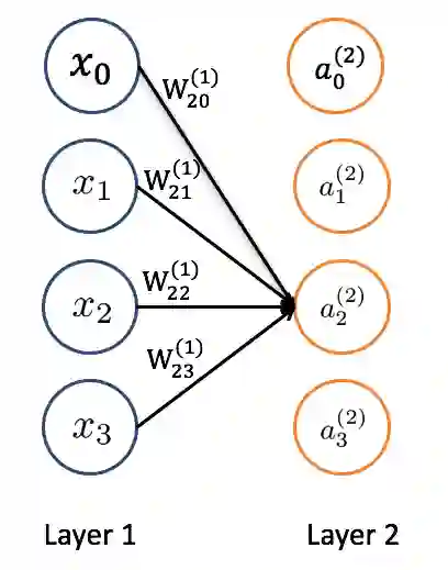 根据这个生物连接,科学家设计出了经典的 2 层神经网络。