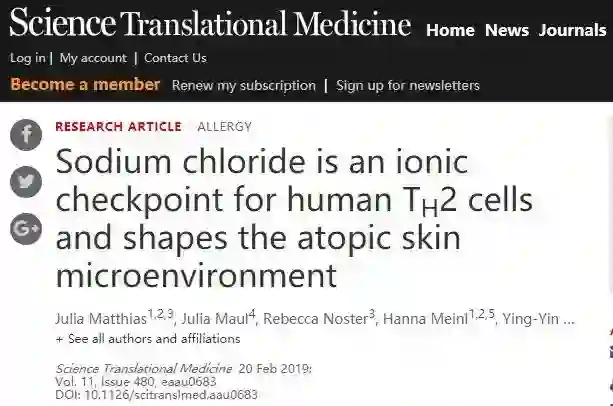 很明显,盐会影响过敏免疫反应。近日,来自德国慕尼黑工业大学(TUM)的研究团队在细胞培养中证实,盐会导致T细胞的一个亚群——Th2细胞的形成。这些免疫细胞在过敏性疾病如特应性皮炎中具有活性。该团队还检测到患者皮肤中盐的水平升高。