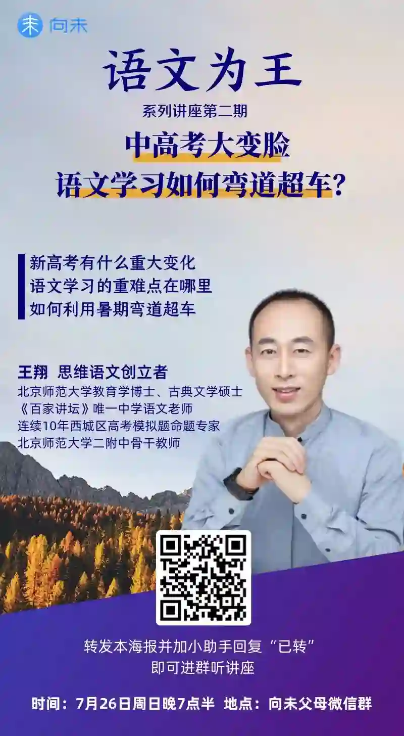 新高考改革之后,语文的区分度大幅提升。这一次,我们请到王翔老师分享,重点分析,中高考大变脸的情况下,如何通过语文学习实现弯道超车。