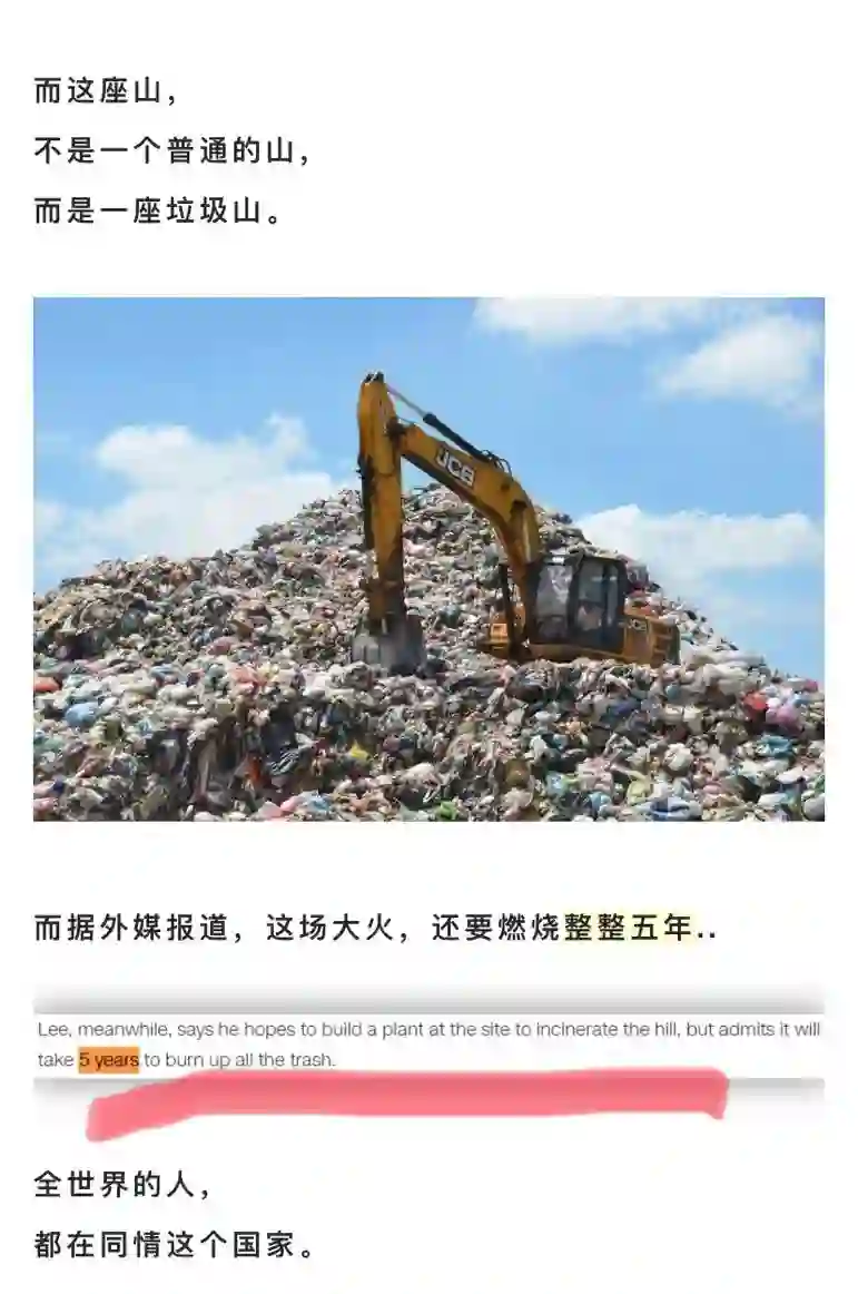 上面是一篇流传广泛的文章里的截图,你仔细看就会发现,这个作者虽然列出了英文原文,但完全是睁眼说瞎话。原说话人的意思是“如果要建一座垃圾焚烧厂来处理,也需要5年”,就被翻译为“(现在这场垃圾大火)还要烧5年”。