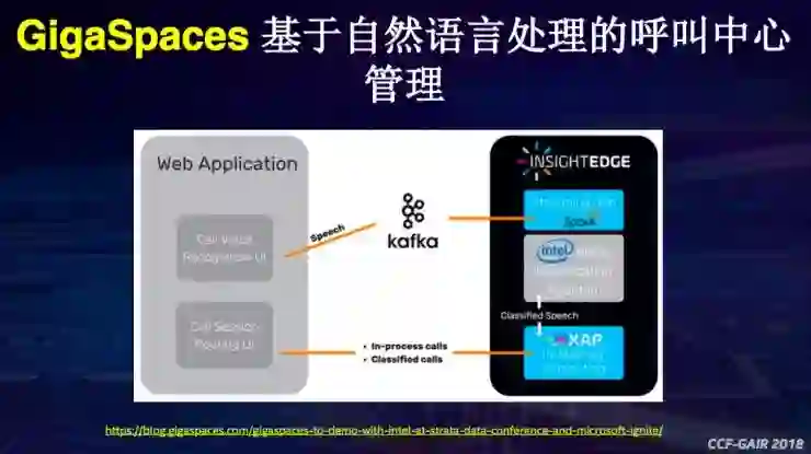 第六个案例是和GigaSpaces合作的通过基于自然语言处理对呼叫中心进行管理。当有用户打电话进来,把其语音转成文本以后,导入到BigDL系统里面,然后对它进行实时的流式处理,使用BigDL上的文本分类模型可以知道用户打电话进来是为什么,他是Windows出了问题还是Mac出了问题,自动就会把呼叫中心的电话录入到不同的部门。