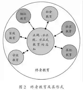 按照教育组织化、制度化程度的不同,教育一般可划分为正规教育(Formal Education)、非正规教育(Nonformal Education)或非正式教育(Informal Education)等几种类型。在联合国教科文组织汉堡教育研究所研究员戴维(R.H.Dave)看来,正规教育、非正规教育或非正式教育等所有教育形式与内容,都包含在终身教育的内涵之中,并指出,“终身教育借助于正规、非正规及非正式的教育形式,试图从横向(空间维度)和纵向(时间维度)全面地看待教育,使教育的所有形态和阶段统一起来[19]”。美国当代教育学家菲利普•库姆斯(Philip H.Coombs)也认为,“这些所有的教育形式联合在一起,才能形成一个为满足所有类别的人一从跨越幼年至青年再到老年的所有人生阶段的、不断増长与变化的学习需要,提供服务性的终身学习网络[20]。