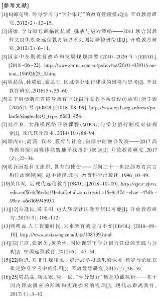 我国2010年颁布的《国家中长期教育改革和发展规划纲要(2010-2020年)》提出,要促进各级各类教育纵向衔接、横向沟通,搭建终身学习“立交桥”,为学习者的学习需求提供多次选择机会,满足个人在终身发展中对学习多样化的需求;同时,提出建立学习成果认证体系,建立学分银行制度[3]等观点。2015年,国家提出建立个人学习账号和学分累计制度,以畅通继续教育、终身学习通道。2016年,《教育部关于办好开放大学的意见》提出,要建设“学分银行”,实现学习成果积累和转换。上述战略性的观点,充分凸显了学分银行的价值、地位。