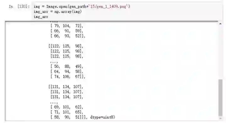 图片经过rescale之后,保存到本地的图片用肉眼看是没有任何区别的,如果我们在内存中直接打印图片的数值,可以看到以下结果: