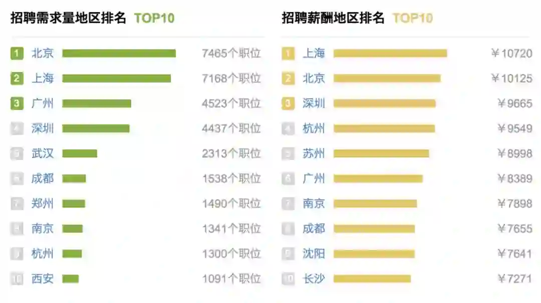 2、市场需求量大,就业状况好:据数据表明,北上广深等一线城市总计23537个招聘岗位,平均薪资达到10043元。相较于其他岗位,产品和运营岗位门槛比较低。