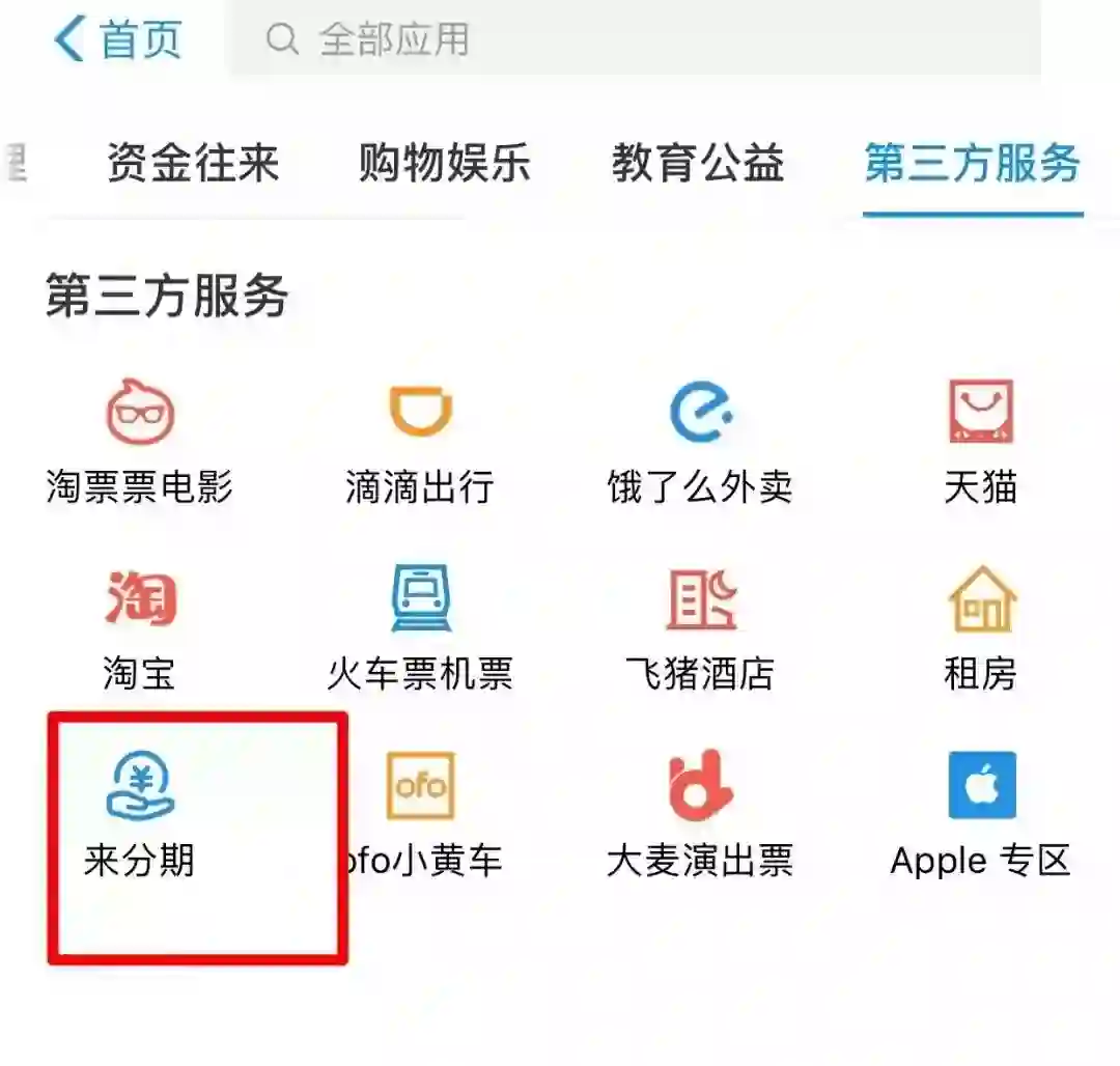 目前支付宝APP“第三方服务”上,给趣店的服务留有入口