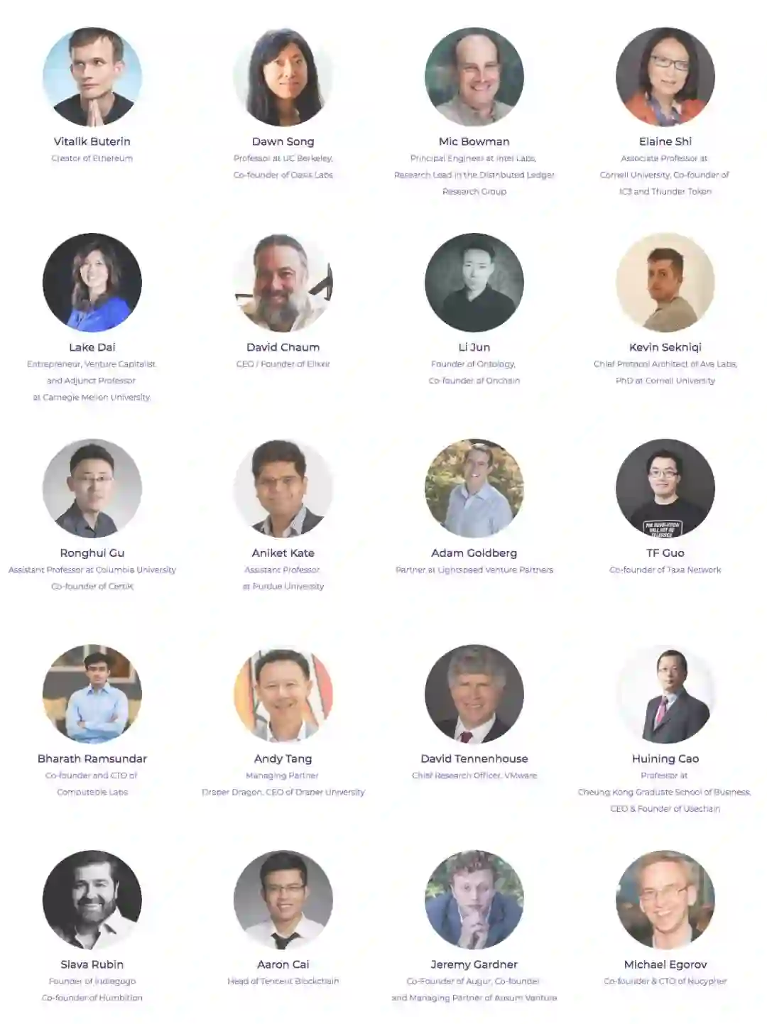 这次峰会将会分两个会场,一个会场专注于学术研讨,主要会由教授、学者、区块链核心开发者,带来最前沿的学术与技术分享:Vitalik Buterin、Jun Li、David Chaum等核心开发者,以及来自加州理工学院(CalTech)、加州大学伯克利分校(UC Berkeley)、康奈尔大学(Cornell U)、哥伦比亚大学(Columbia U)、华盛顿大学圣路易斯分校(Washington U at St. Louis)、英属哥伦比亚大学(UBC)、普渡大学(Purdue U)等世界顶尖高校的教授和研究者们,都会参与其中。