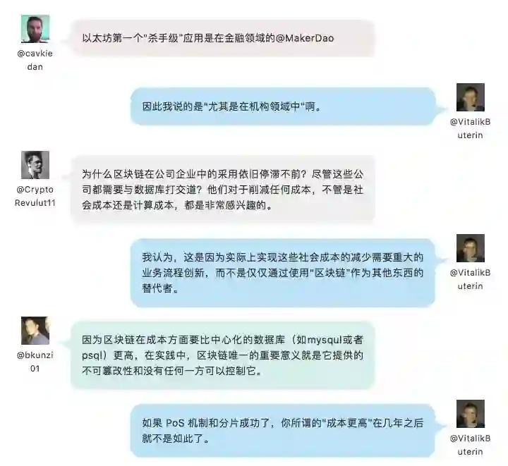 在区块链技术的应用方面,以太坊创始人 Vitalik Buterin 有着自己的看法: