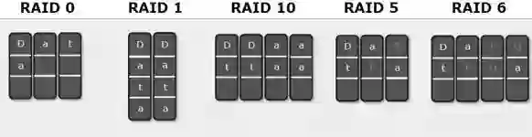 常用RAID技术有以下几种,如图所示: