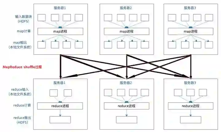 前面提到MapReduce编程模型将大数据计算过程切分为map和reduce两个阶段,在map阶段为每个数据块分配一个map计算任务,然后将所有map输出的key进行合并,相同的key及其对应的value发送给同一个reduce任务去处理。