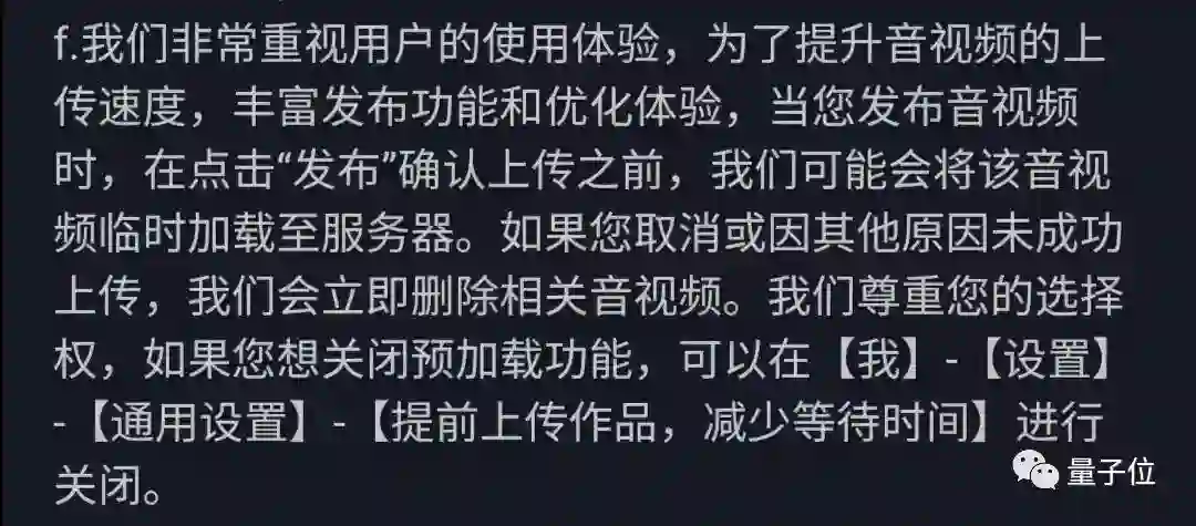 当时也有眼尖的网友注意到,在抖音APP端的“隐私政策”中,有这样一条:当您发布音视频时,在点击“发布”确认上传之前,我们可能会将该音视频临时加载至服务器。