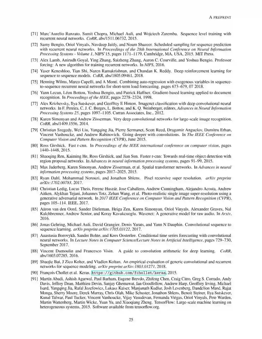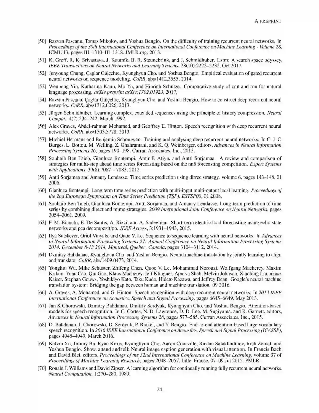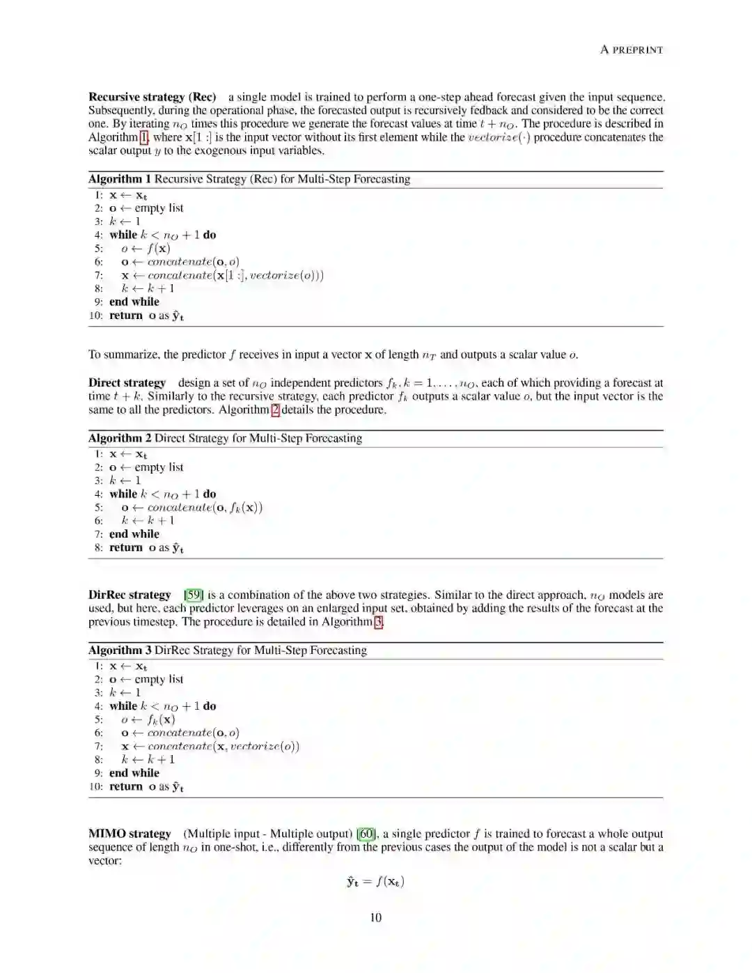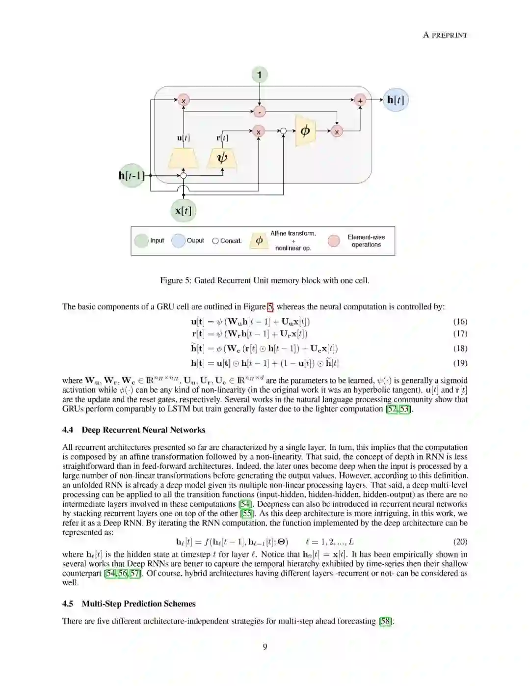 文章组织结构如下:第2章介绍了预测问题模型以及文中使用到的符号定义。之后章节分别介绍了前馈神经网络和与学习预测任务相关的概念定义;递归神经网络的总体概述和目前最先进的两种变体架构:长短时记忆网络和门控递归单元网络;接下来详述了序列到序列结构(seq2seq)对递归神经网络的提升;同时也分析了卷积神经网络和时域卷积网络。最后,作者介绍了来自真实场景的数据集,可以用于对各个方法模型进行性能对比。