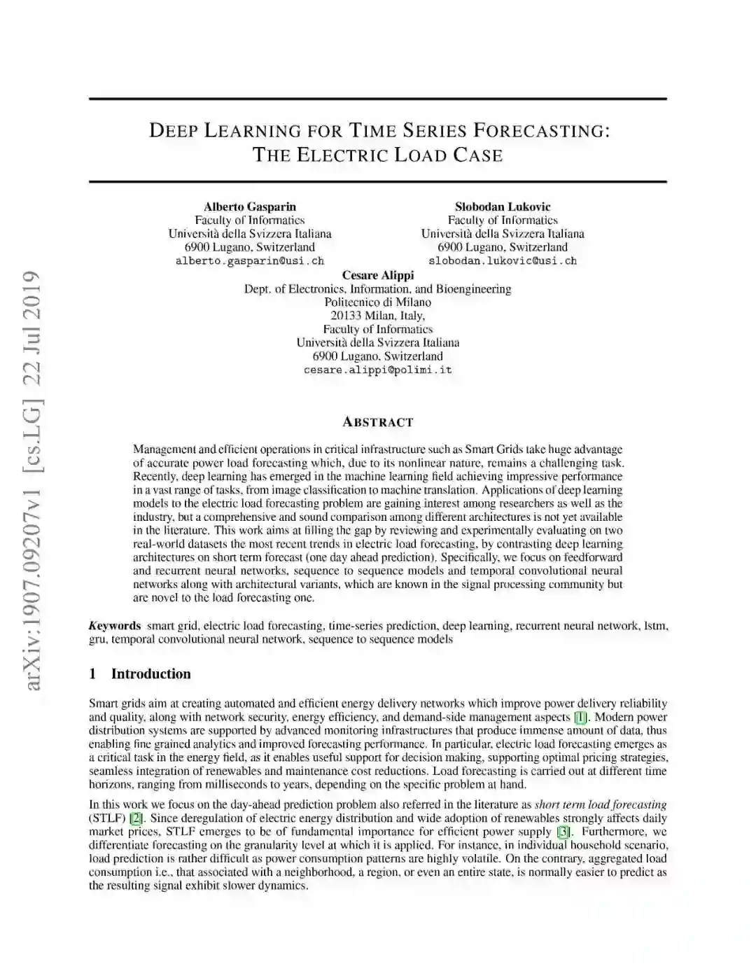 本文全面综述了基于深度学习架构进行预测这一领域的工作,并应用到与之非常相关的智能电网电力负载预测的研究中。