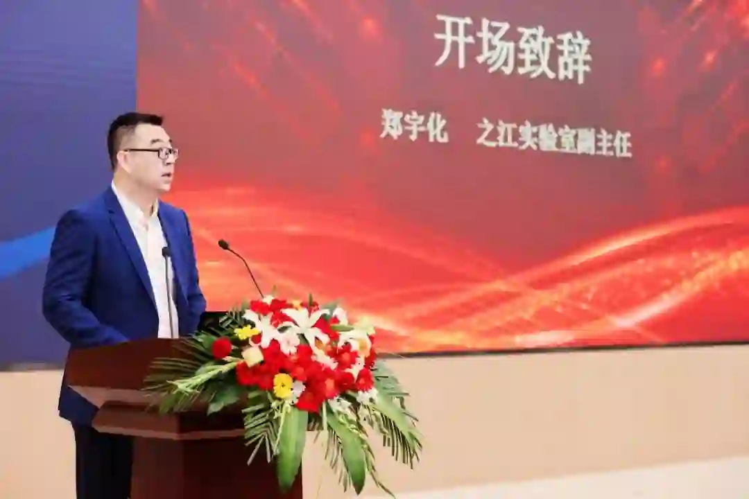 之江实验室副主任郑宇化做了开场致辞。他简要介绍了之江实验室并对参加本次活动的领导和嘉宾的到来表示感谢,并预祝本次活动圆满成功。