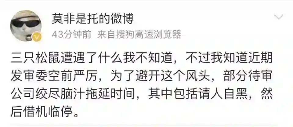 综合报道 12月12日晚间,证监会发审委取消原定于12月13日审议的三只松鼠股份有限公司首发事宜。有媒体爆料,IPO临停原因是遭自媒体勒索,也有评论人士称另有隐情。