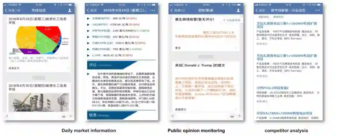 能源价格的变动具有周期性,不仅受供求关系影响,而且受政策等因素的影响。建立化工大数据平台,开发在能源化工领域的大周期价格及需求预测技术,深度分析行业产品及价格趋势,可以为客户提供新建项目的产品路线选择优化、在建项目和已运行项目的产业链优化等解决方案,进而帮助企业优化产品结构、提升经济效益。