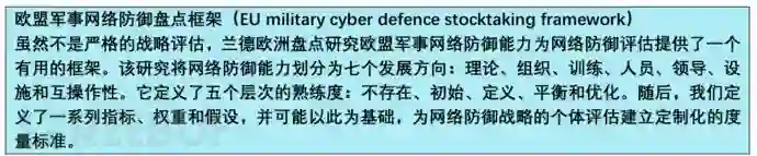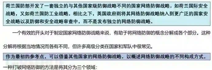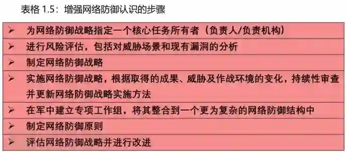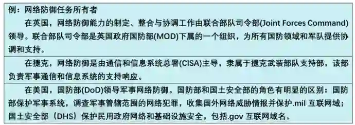 网络防御战略作为实施网络防御活动的框架,通常包括多个长期目标,在不同领域指派不同的任务所有者。