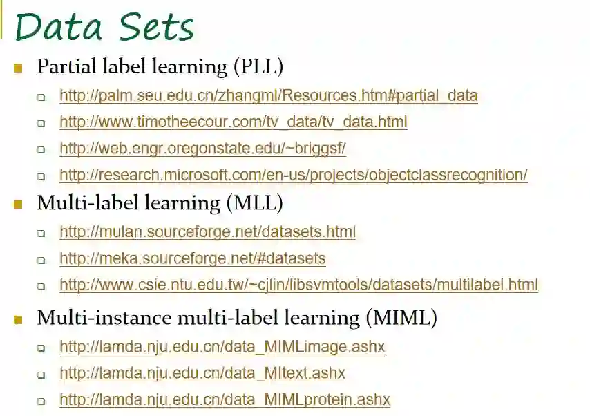 报告的最后,张教授为我们提供了有关偏标记学习的数据资源。