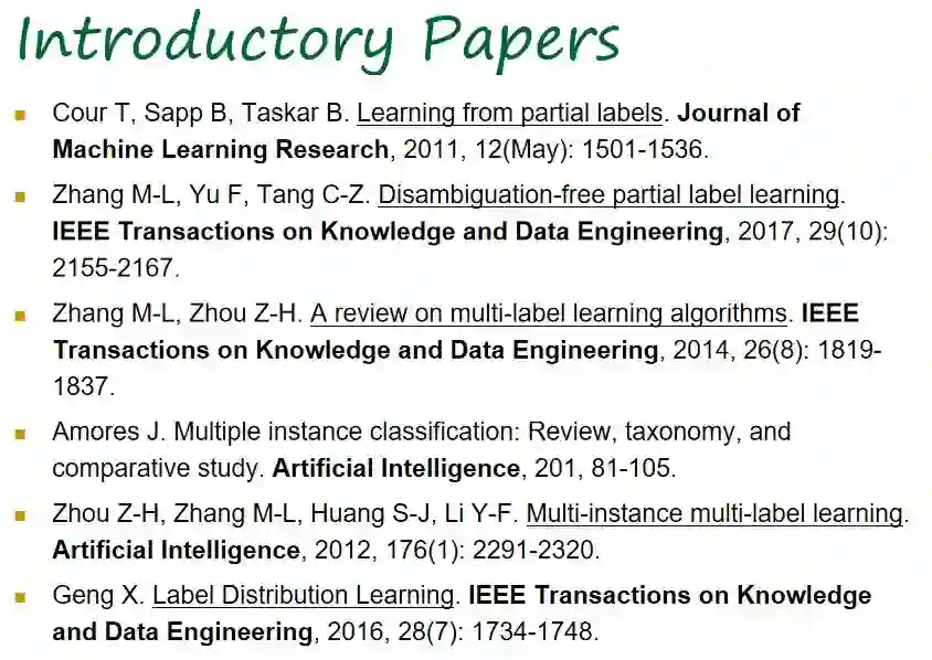 他从三方面内容介绍了偏标记学习的研究现状:一是简要讨论偏标记学习的问题设置及其与相关弱监督学习框架的关系;二是对现有偏标记学习算法进行总结并介绍张教授所在团队在该方面的最新工作;三是给出偏标记学习的相关学术资源。