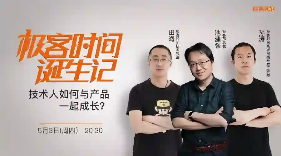 这期间极客时间技术团队是如何从零组建起来的?如何建立起统一的技术体系?极客时间后端和前端技术如何选型和演化的?今晚八点半,极客时间总指挥池建强、技术总监田海、前端团队负责人孙涛将在极客 Live与大家分享《极客时间诞生记——技术人如何与产品一起成长》