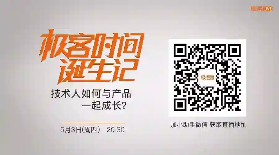 扫描下方二维码或搜索微信号“geeklive002”,添加小助手微信,备注“昵称 -公司 -职位”,通过后即可获取直播地址。还可加入技术交流群,与大家交流。