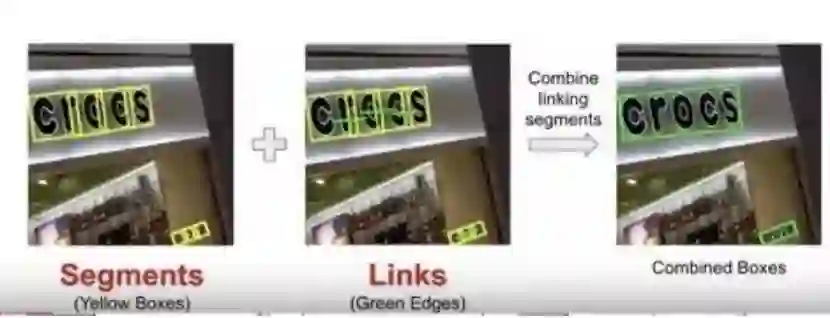 同时检测多个文字片段以及学习出文字片段之间8-Neighbor连接关系,最后通过8-Neighbor连接关系将文字片段连接起来