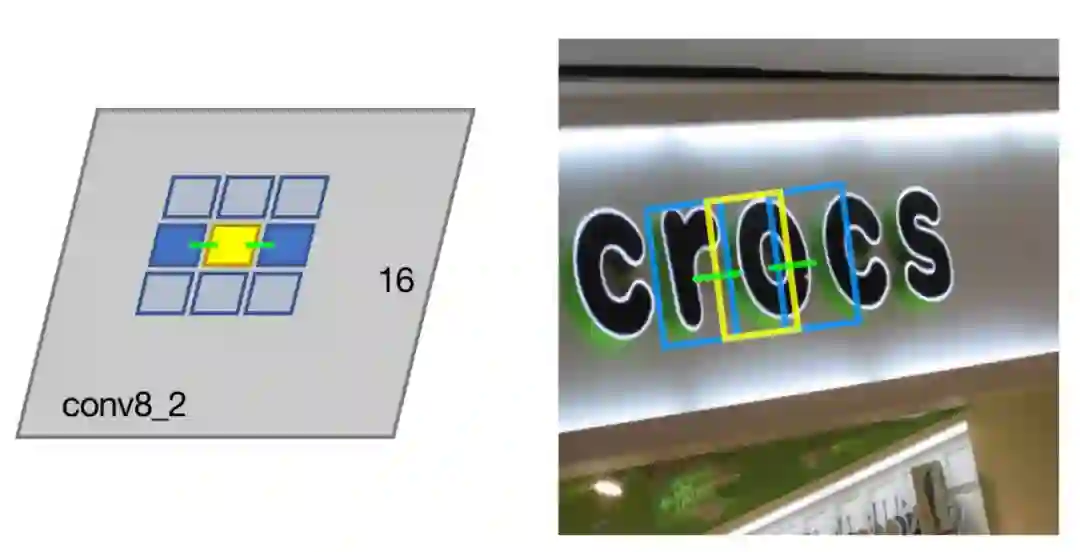 )。此外,为了处理各种方向文字,在不同尺度的特征图上预测文字片段以及片段之间的连接关系,然后对预测出的文字片段和连接关系进行组合,得到最终文本框。下面将具体介绍方法。