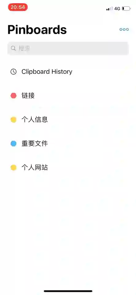 支持用户自己创建 Pinboard,也就是我们平时所说的“文件夹”。可以将自己经常要用到的一些信息,比如“个人网站信息”、“地址”等分类到这些文件夹中,方便你在需要它的时候,快速找到。