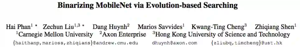 论文标题:Binarizing MobileNet via Evolution-based Searching