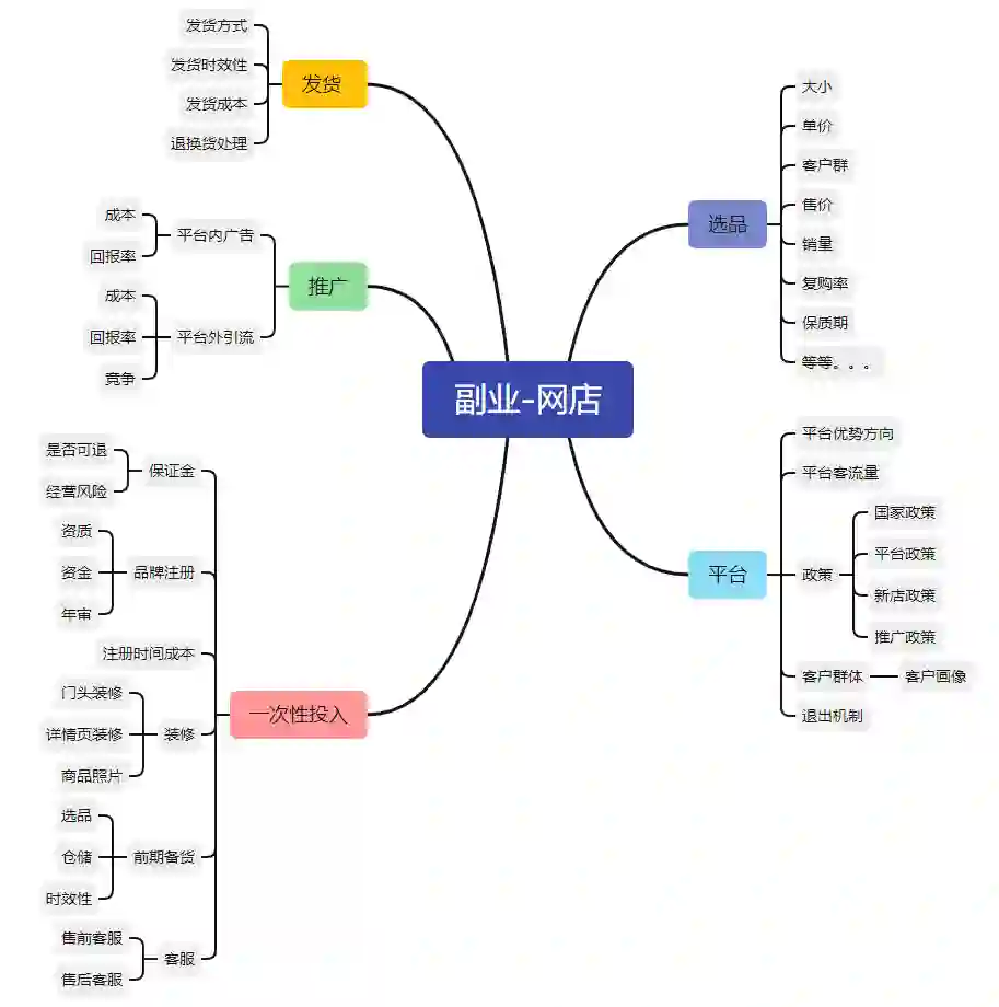 这里用开网店做例子进行一下简单分析,大家了解了思路就可以了——毕竟每个行当,每个阶段,甚至每个时间段需要考虑的因素都不一样。