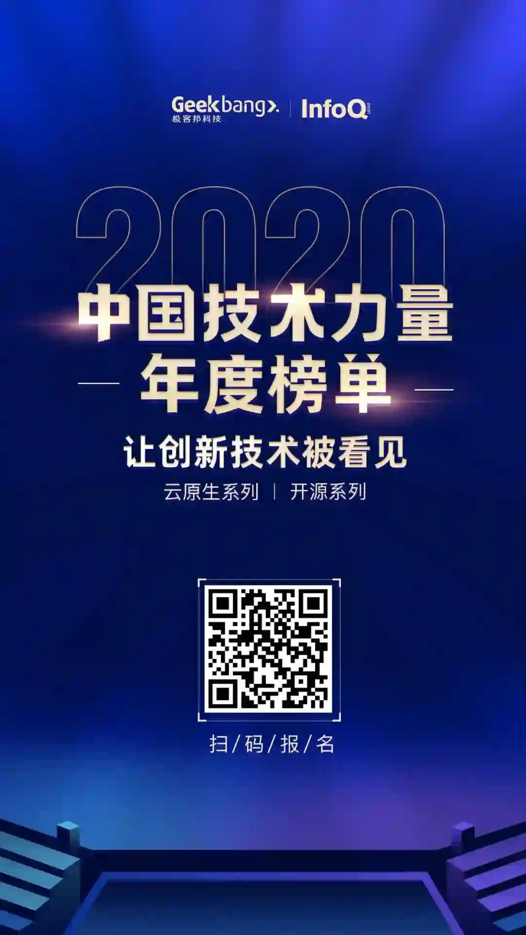 任何企业或者个人都可以通过 2020 中国技术力量年度榜单评选活动官方网站进行报名,所有报名结果经过初步筛选后,将通过专家评审团专业打分、用户公开投票以及 InfoQ 主编打分,公正、公平、公开得出最终结果。(点击文末阅读原文,可了解活动详情并报名参选。)