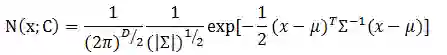 在上述定义中,x是维数为D的样本向量,mu是模型期望,sigma是模型协方差。对于单高斯模型,可以明确训练样本是否属于该高斯模型,所以我们经常将mu用训练样本的均值代替,将sigma用训练样本的协方差代替。 假设训练样本属于类别C,那么上面的定义可以修改为下面的形式: