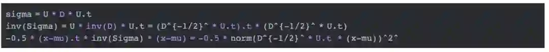 上面的rootSigmaInv和u通过方法calculateCovarianceConstants计算。这个概率密度函数的计算需要计算sigma的行列式以及逆。