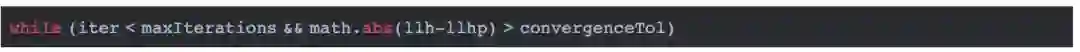 初始化后,就可以使用EM算法迭代求似然函数中的参数。迭代结束的条件是迭代次数达到了我们设置的次数或者两次迭代计算的对数似然值之差小于阈值。