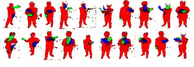 上图一些将左右手分割的示例,其中蓝色表示左手,绿色表示右手,黑色不太确定。通过混合基于学习的手势估计办法和显式手部运动学以及表面几何生成模型,产生最终的手部追踪系统。
