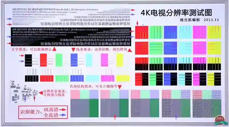 在 4K 清晰度与灰阶测试中,乐视超 4 X55M 综合表现十分优秀,特别是灰阶测试中,图中分布的每一个色块几乎都能较好的显示;而在清晰度方面,线条以及区块字体也能清晰展示,细腻程度可圈可点。