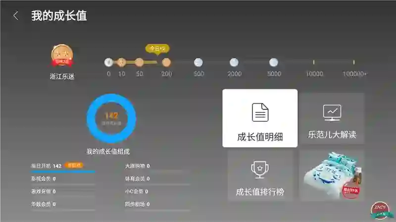 值得说明的是,在 4 周年发布会上,乐视提出了一个“共享电视”的概念,即“续杯”模式。按照规则,在乐视超 4 X55M 上进入乐范儿完成任务,再加购 1 年 490 超级影视会员即可获得最多 4 年超级影视会员。“续杯”任务分为“年度开机到达 277 天”、“乐范成长值年度增加 3000”、“购买服务大礼包”三个,用户只需达成任意一个即可获得 1 年超级影视会员。实际上,这对于基础乐视超级电视用户来说,肯定是一件不错的模式,因为乐视超级电视基本上就是固定在影视会员编制下的(非会员用户仅能观看流畅清晰度视频,体验不佳),想要获得出色的电视使用感,影视会员不可缺少,而续杯活动就是在一定程度缓解用户使用成本。从“续杯”模式的开发来说,它一方面是是乐视针对基础用户群的实惠选择,另一方面也是乐视增加保有流量的途径。