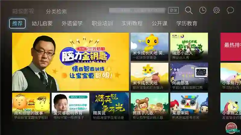 综合其他内容资源,少儿教育的需求侧重点也很高,并逐渐成为家庭日常使用必不可少的部分。乐视超 4 X55M 相关集成的教育内容与儿童动漫相当成熟,并且拥有多项独立专属板块,拥有不同形式的内容编制。包括超级影视教育、动漫、儿童 TV 等,涵盖内容面相当广泛。