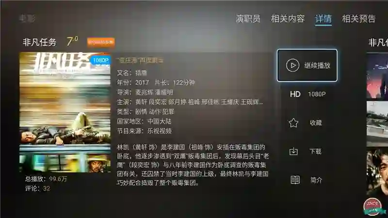 视频清晰度方面,根据不同片源视频提供 4K、3D 1080P 以及杜比 1080P 支持,满足不同用户的使用需求。影视详情页面,用户可以直接设置视频清晰度,系统会非常贴心的提示每种清晰度下的网络支持条件。不同的是,以往语音操控在影视详情页面的支持的交互在乐视超 4 X55M 身上表现并不突出,暂时无法实现影视详情页面下对清晰度与播放集数内容的语音交互,显得有些遗憾。
